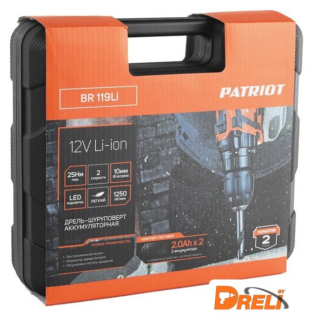 Комплектация | - шуруповерт- кейс- 2 АКБ- зарядное устройство- бита |
