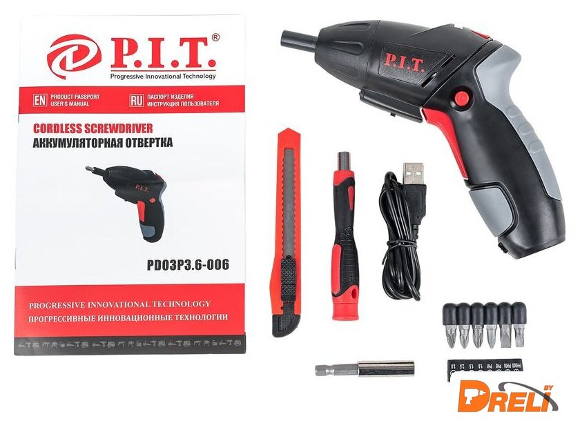Комплектация | - отвертка аккумуляторная- пластиковый кейс- нож канцелярский- держатель-отвертка- USB-кабель- магнитный адаптер- набор бит (15 шт) |