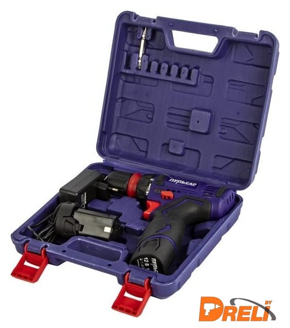 | Комплектация | Аккумуляторная дрельАккумуляторная батарея – 2 штЗарядное устройствоРуководство по эксплуатацииКейс |