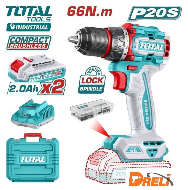 | Комплектация | - Дрель-шуруповерт - 1 шт.- Аккумулятор 2,0 Ач - 2 шт.- Зарядное устройство - 1 шт.- Аксессуары - 47 шт.- Инструкция- Кейс |