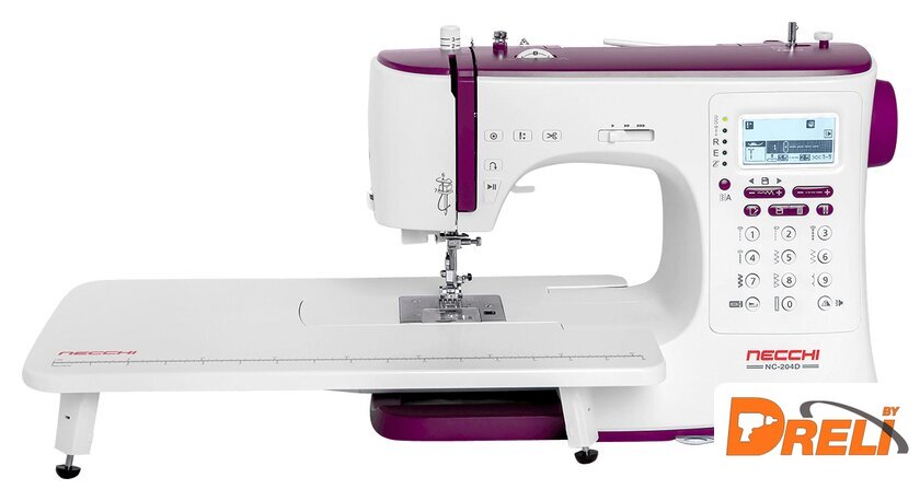 Комплектация | большой и маленький держатели катушки, вспарыватель шва со щеткой для чистки машины, электронная лапка для выметывания петли, лапка для пришивания молнии, лапка для пришивания пуговицы, L-образная отвертка, шпульки, направляющая для квилтинга, запасные иглы, лапка для атласных строчек, лапка для потайной строчки, лапка для оверлочной строчки, лапка-улитка для подгибки края ткани, лапка для сосбаривания ткани, лапка для вшивания шнура, лапка для квилтинга, лапка для штопки/ вышивки, двойная игла, шагающая лапка, фетровая прокладка, стержень для второй катушки |