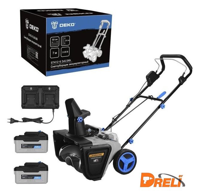 Комплектация | - Снегоуборщик – 1 шт.- Аккумулятор 6,0 Ач – 2 шт.- Двойное зарядное устройство – 1 шт.- Руководство по эксплуатации- Коробка. |