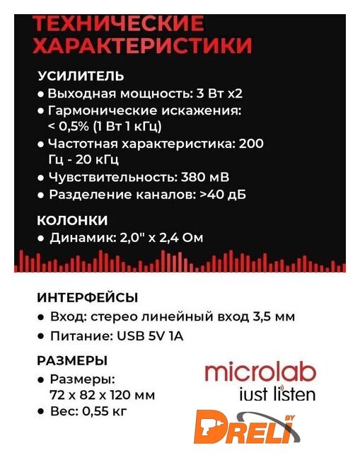 | Суммарная номинальная мощность (RMS) | 6 Вт |