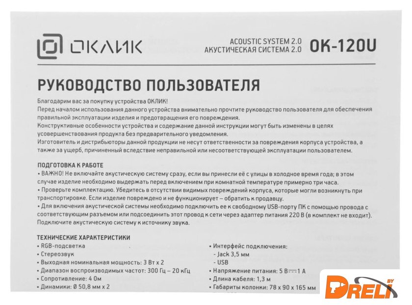 | Суммарная номинальная мощность (RMS) | 6 Вт |