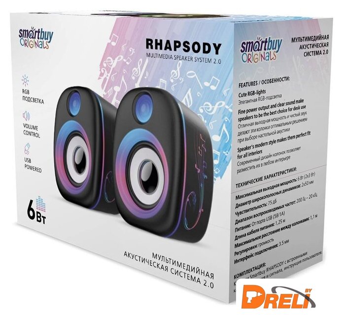 | Суммарная номинальная мощность (RMS) | 6 Вт |