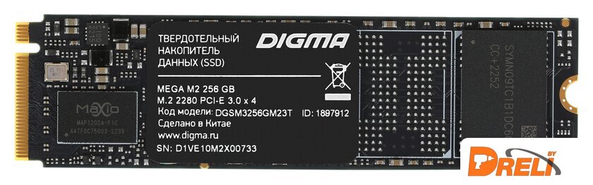 512 ГБ, M.2, PCI Express 3.0 x4, контроллер Maxio MAP1202, микросхемы 3D TLC NAND