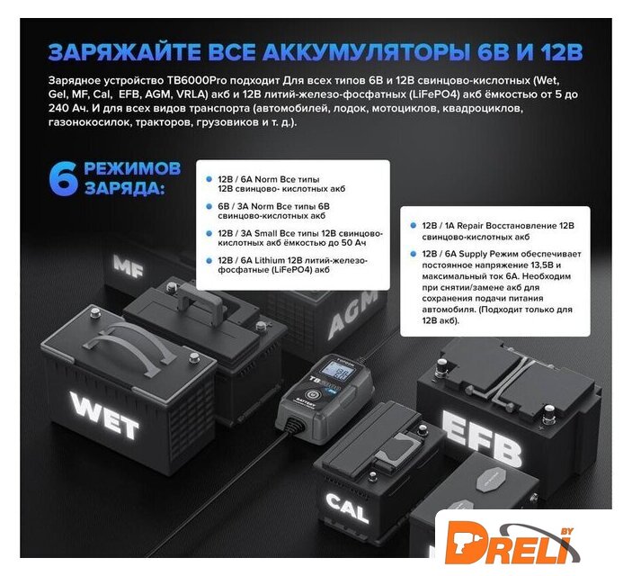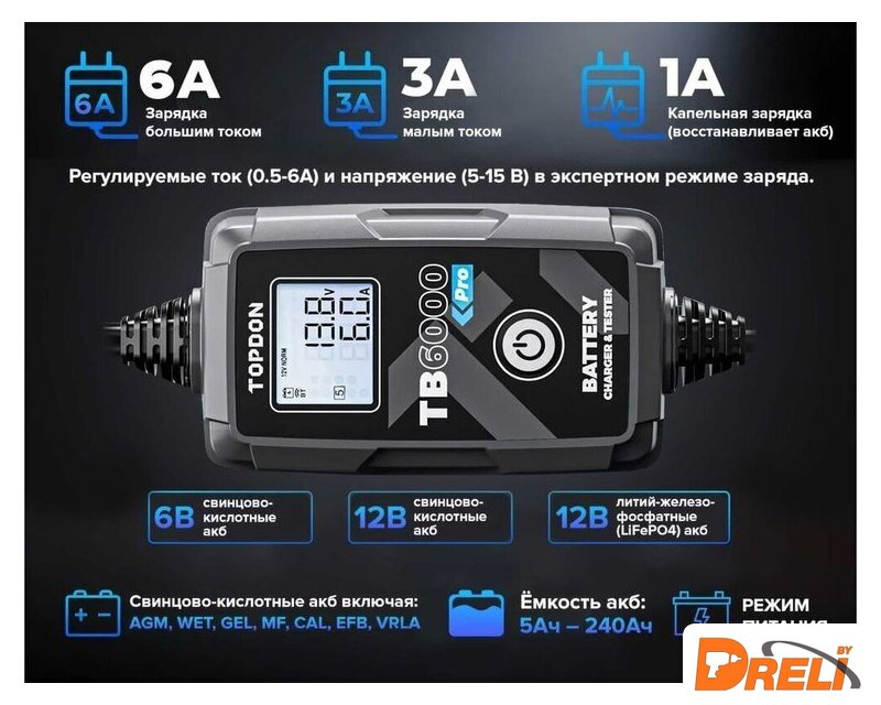 | Ток зарядки | 1 — 6 А |