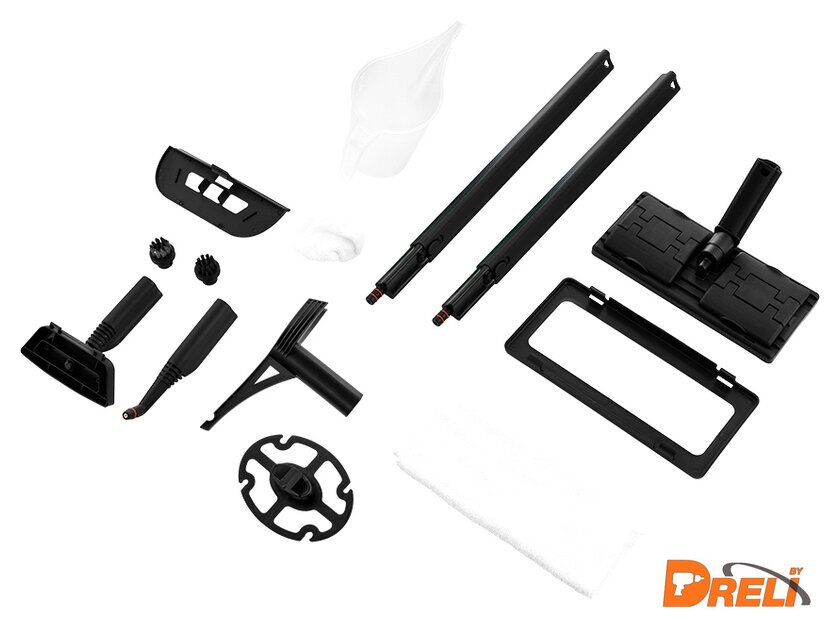 | Дополнительные насадки и приспособления | - тряпка для отпаривания;- латунная щетка;- тряпка для пола;- насадка для отпаривания;- рамка для ковра;- мерный стакан;- круглая нейлоновая щетка;- держатель шнура;- держатель для одежды;- запасные уплотнительные кольца;- колпачок на паровое сопло. |