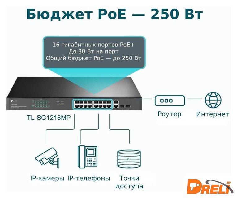 | Бюджет мощности PoE | 250 Вт |