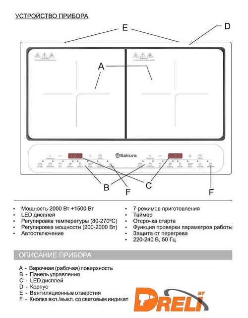 | Диаметр посуды | 120 — 260 мм |
