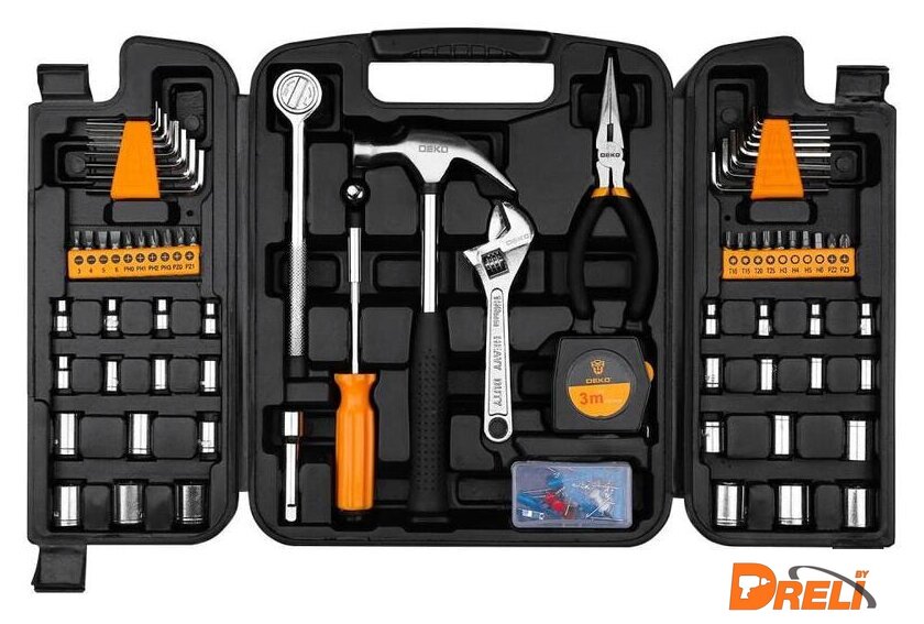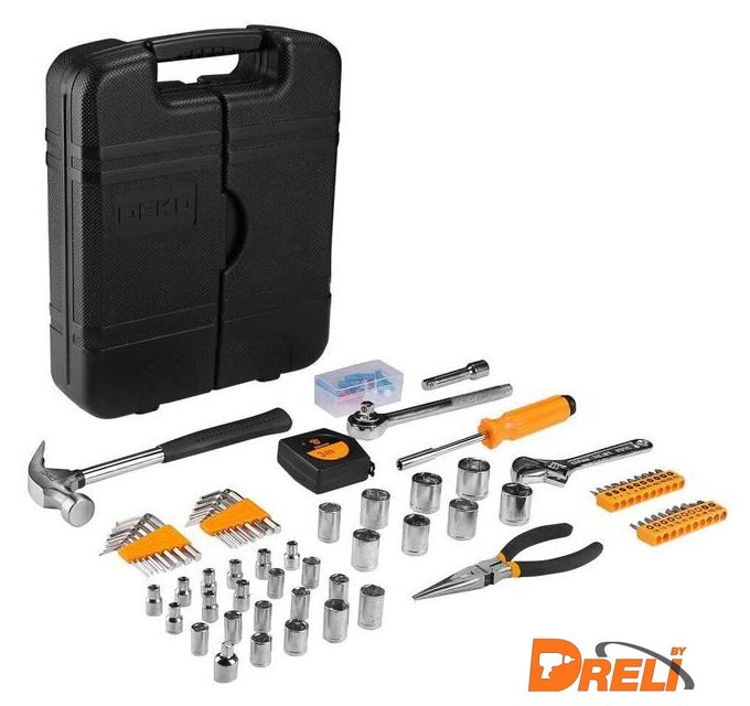Комплектация | - 16 шт шестигранные ключи 1.5-6мм,1/16-1/4"- 20 шт биты 25L: SL3,4,5,6,PH0,1,2,3, PZ0,1,2,3,T10,15,20,25,H3,4,5,6- 18 шт торцевые головки 1/4": 4,4.5,5,5.5,6,7,8,9,10мм,- 5/32,3/16,7/32,1/4,9/32,5/16,11/32,3/8,7/16- 10 шт торцевые головки 3/8": 12,13,14,15,17мм,1/2,9/16,5/8,3/4,11/16- 1 шт адаптер 3/8"x1/4"- 1 шт удлинитель 3/8"x3"- 1 шт трещотка 3/8"- 1 шт держатель бит 6.35мм- 1 шт молоток-гвоздодер 8 унций- 1 шт разводной ключ 6"- 1 шт длинногубцы 6"- 1 шт рулетка 3мм- 80 шт крепеж- Кейс |