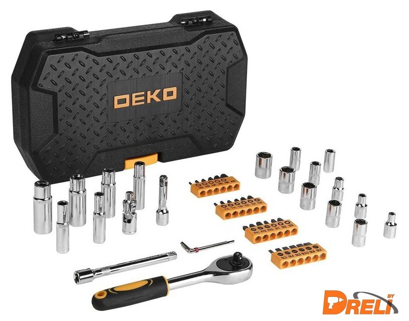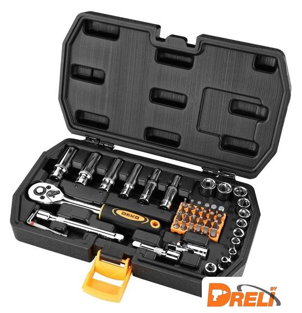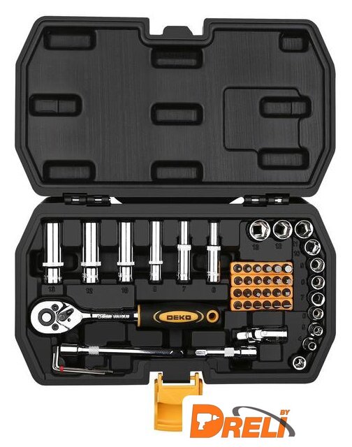 Комплектация | - 23 шт. биты SL3,4,5,5.5,6,7, PH1,2,3,S1,2,3 T10,15,20,25,27,30, H2,3,4,5,6;- 1 шт. адаптер;- 3 шт. шестигранный ключ 1.5,2,2.5 мм;- 6 шт. глубокие головки 1/4": 6,7,8,10,12,13 мм;- 10 шт. головки 1/4" 4,5,6,7,8,9,10,11,12,13 мм;- 1 шт. универсальный шарнир 1/4";- 1 шт. соединитель 1/4";- 2 шт. удлинитель 1/4 ": 2", 4 ";- 1 шт. трещотка 1/4";- 1 шт. кейс. |