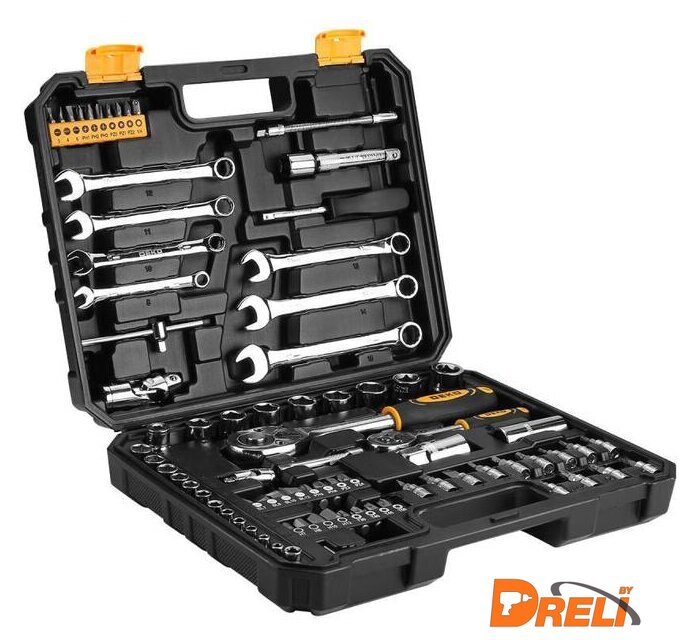 Комплектация | Биты 25L*10 шт. (SL3,4,6,PH1,2,3,PZ0,1,2,A.D.)Комбинированные ключи *7шт. (8,10,11,12,13,14,15 мм)Держатель головок *1шт. 1/4"Универсальный шарнир *2шт. (1/4",1/2")Вороток*1шт 1/4"Удлинитель *2шт. (1/4"x3",1/2"x5")Гибкий стержень *1 шт. 1/4"Соединитель *1 шт. 1/4"Адаптер *2 шт. (1/4"x6.35mm, 1/2"x8mm)Головки 1/4" *12 шт. (4,4.5,5,5.5,6,7,8,9,10,11,12,13мм)Головки 1/2" *8 шт. (14,15,16,17,18,19,20,22мм)Гаечный ключ с трещоткой *2шт. (1/4",1/2")Головки свечные *2шт. (1/2"x16,21мм)Шестигранный ключ *3шт. (1.5,2,2.5мм)Биты 8мм *16шт. (SL7,8,10,12,PH3,4,PZ3,4,H7,8,10,12,T30,40,45,50)Биты-головки *13шт. (SL4, 5.5, 7,PH1, 2,PZ1, 2,H3, 4, 5,T10, 15, 20) |