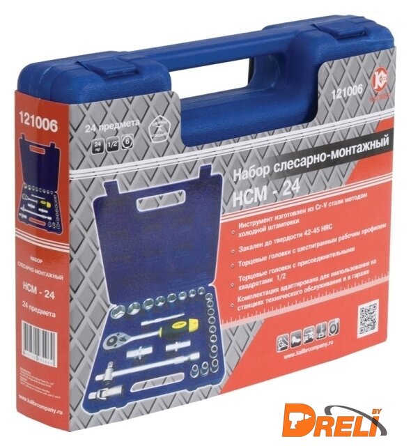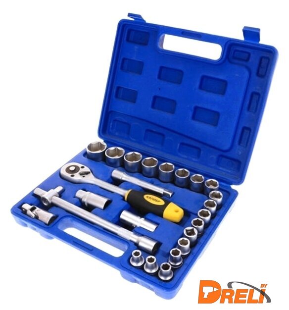 | Комплектация | - Инструмент с присоединительным квадратом 1/2” (12,5мм);- Головка торцевая: 8/9/10/11/12/13/14/15/16/17/18/19/20/22/24/27/30/32 мм;- Ключ свечной: 16 мм/21 мм;- Удлинитель со скользящим переходником;- Удлинитель;- Трещотка;- Коловорот. |