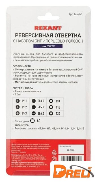 | Комплектация | - Реверсивная отвертка под биты;- Адаптер для бит;- Переходник;- Биты: PH1, PH2, PH3SL3.0, SL5.0, SL6.0T10, T15, T20,- Головки: M5, M6, M7, M8, M9, M10, M11, M12, M13" |