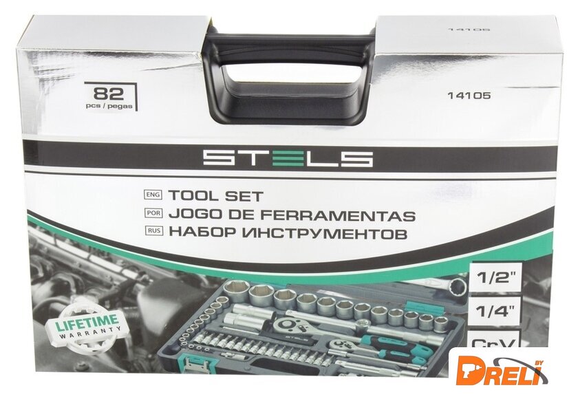 | Комплектация | - Ключ трещоточный 1/2.- Ключ трещоточный 1/4.- Головки торцевые 1/2: 14, 15, 16, 17, 18, 19, 20, 22, 24, 27, 30, 32.- Головки торцевые 1/4: 4, 4.5, 5, 5.5, 6, 7, 8, 9, 10, 11, 12, 13, 14.- Удлинитель гибкий отверточная рукоятка 1/4.- Ключи комбинированные: 8, 10, 11, 12, 13, 14, 17, 19, 22.- Кардан 1/2.- Кардан 1/4.- Удлинитель 1/2: 125 мм, 250 мм.- Удлинитель 1/4: 50 мм, 100 мм.- Адаптер для бит 1/4 -длина 25 мм.- Головки свечные 1/2: 16 мм и 21 мм;- Вороток Т-образный, 1/2, 1/4.- Биты с торцевой головкой 1/4 -длина 32 мм: Н - 3, 4, 5, 6, T8, T10, T15, T20, T25, T30, SL 4, 5.5, 7, PH1, PH2, PZ1, PZ2.- Адаптер 1/2 на 3/8.- Держатель для бит 1/2 на 5/16.- Биты 5/16: T40, Т45, Т50, Т55, SL8, SL10, SL12, PH3, PH4, PZ3, PZ4, Н - 8, 10, 12, 14.- Отвертка держатель для бит. |