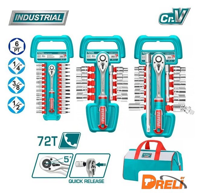 | Комплектация | Набор инструментов 1/4": Трещотка 72T 1/4" - 1 шт. Торцевые головоки 1/4" (4 / 4,5 / 5 / 6 / 7 / 8 / 9 / 10 / 11 / 12 / 13 / 14) - 12 шт. Торцевые головоки-биты 1/4" (SL4 / SL5,5 / SL7 / PH1 / PH2 / T10 / T15 / T20 / T25 / T30 / H4 / H5 / H6 / H7) - 14 шт. Пластиковый подвес для храненияНабор инструментов 3/8": Трещотка 72T 3/8" - 1 шт. Торцевые головоки 3/8" (8 / 10 / 11 / 12 / 13 / 14 / 15 / 16 / 17 / 19) - 12 шт. Удлинитель 3/8" (150 мм) - 1 шт. Пластиковый подвес для храненияНабор инструментов 1/2"": Трещотка 72T 1/2" - 1 шт. Торцевые головоки 1/2" (10 / 11 / 12 / 13 / 14 / 15 / 16 / 17 / 18 / 19 / 21 / 24) - 12 шт. Свечная головка 16 мм - 1 шт. Универсальный шарнир 1/2" - 1 шт. Удлинитель 1/2" (125 мм) - 1 шт. Удлинитель 1/2" (250 мм) - 1 шт. Пластиковый подвес для хранения |
