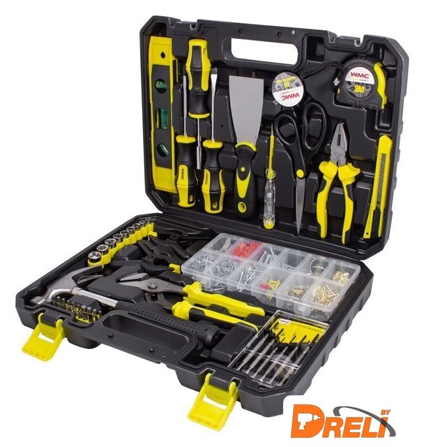 | Комплектация | 9 шт. - Головки 1/4": 5, 6, 7, 8, 9, 10, 11, 12, 13 мм 2 шт. - Отвертка: SL 6x100 мм, PH 2x100 мм 1 шт. - Индикаторная отвертка 6 шт. - Ювелирные отвертки: SL: 1.4/2.0/2.4/3.0 мм, PH: 0/1 1 шт. - Рукоятка-битодержатель 20 шт. - Биты 25 мм: SL 4мм/5мм/6мм, PH1, PH2, PH3, PZ1, PZ2, PZ3, AD, H3, H4, H5, H6, T10, T15, T20, T25, T27, T30 1 шт. - Ножницы 1 шт. - Уровень 225 мм 1 шт. - Молоток гвоздодер 1 шт. - Клещи переставные 200 мм 1 шт. - Плоскогубцы комбинированные 160 мм 1 шт. - Изолента 3м 1 шт. - Рулетка 3м 1 шт. - Нож канцелярский 9 мм 2 шт. - Захват 3" 1 шт. - Шпатель 50 мм 600 шт. - Крепеж в ассортименте 1 шт. - Кейс |