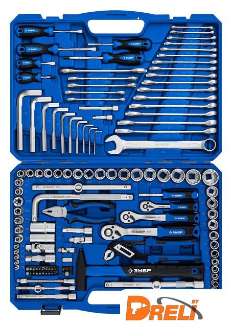 Комплектация | Головки торцовые двенадцатигранные 1/2″ - (8,10,12,13,14,15,16,17,18,19,20,21,22,23,24,25,27,30,32 мм) - 19 шт.Головки торцовые двенадцатигранные 3/8″ - (6,7,8,9,10,11,12,13,14,15,17,18,19,21,22 мм) - 15 шт.Головки торцовые FLANK 1/4″ - (4,4.5,5,5.5,6,7,8,9,10 мм) - 9 шт.Головки торцовые E-TORX 1/2″ - (E10,E12,E14,E16,E20) - 5 шт.Головки торцовые E-TORX 1/4″ - (E4,E5,E6,E7,E8) - 5 шт.Головки торцовые свечные с резиновой вставкой 1/2″ - (16,21 мм) - 2 шт.Трещотки для торцовых головок с быстрым сбросом 72 зубца - (1/2″,3/8″,1/4″) - 3 шт.Шарниры карданные - (1/2″,3/8″,1/4″) - 3 шт.Удлинители для торцовых головок 1/2″ - (75,250 мм) - 2 шт.Удлинители для торцовых головок 3/8″ - (75,150 мм) - 2 шт.Удлинители для торцовых головок 1/4″ - (50,100,150 мм) - 3 шт.Удлинитель гибкий 1/4″ - (150 мм) - 1 шт.Адаптеры трехпозиционные - (3/8″F x 1/2″M, 3/8″F x 1/4″M) - 2 шт.Вороток-отвертка 1/4″ - (150 мм) - 1 шт.Вороток L-образный 1/2″ - (250 мм) - 1 шт.Вороток перекидной 1/2″ - 1 шт.Переходник для бит - (HEX1/4″F х SQ1/4″F) - 1 шт.Биты 1/4″ х 25 мм - (T10,T15,T20,T25,T27,T30,T40,SL4,SL5.5,SL7,H2,H3,H4,H5,H6,H7,H8,H10,PZ0,PZ1,PZ2,PZ3,PH0,PH1,PH2,PH3) -26 шт.Плоскогубцы 180 мм - 1 шт.Клещи переставные - 1 шт.Отвертки - (SL5.5 x 75,SL6.5 x 38,SL6.5 x 100,PH1 x 75,PH2 x 38,PH2 x 100 мм) - 6 шт.Молоток кованый с фибергласовой рукояткой 300 г - 1 шт.Ключи комбинированные - (6,7,8,9,10,11,12,13,14,15,16,17,18,19,21,22,24 мм) - 17 шт.Ключи рожковые - (8 х 10,10 х 12,11 х 13,12 х 14,17 х 19 мм) - 5 шт.Ключи имбусовые - (H2.5,H3,H4,H5,H6,H7,H8,H10,H12,H14) - 10 шт. |