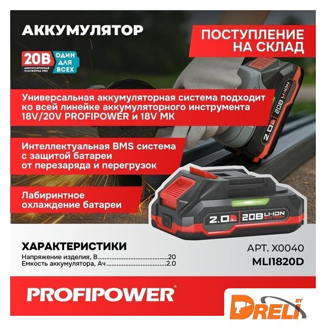 | Номинальное напряжение аккумулятора | 20 В |