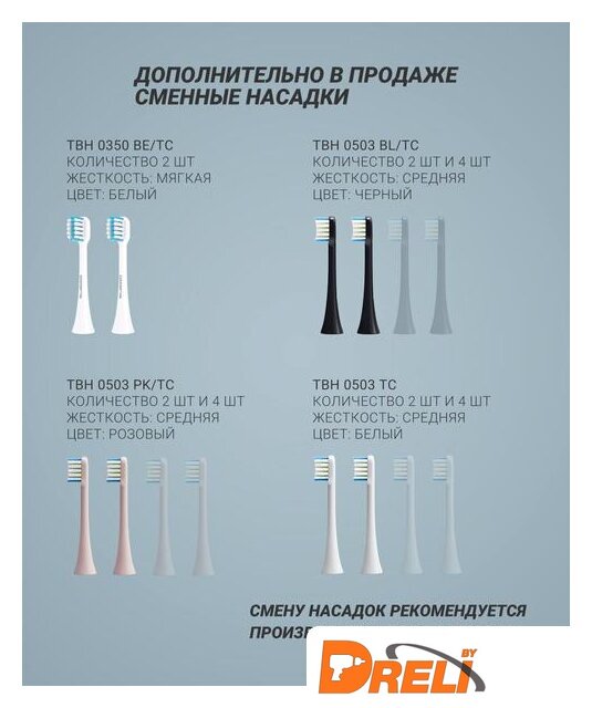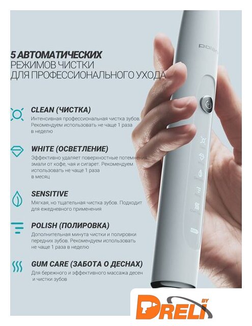 | Дополнительное действие | мягкая чистка, глубокая чистка, отбеливание, массаж, полировка |