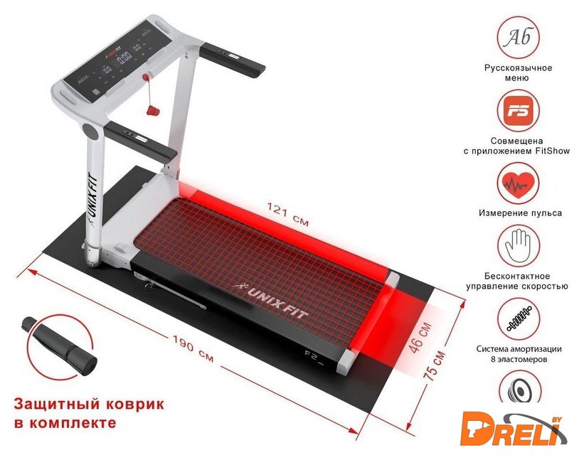 Особенности | Имеется возможность синхронизации беговой дорожки с мобильным устройством при помощи приложения FitShow/Kinomap/Zwfit, с возможностью управления беговой дорожкой и сохранения тренировок. |