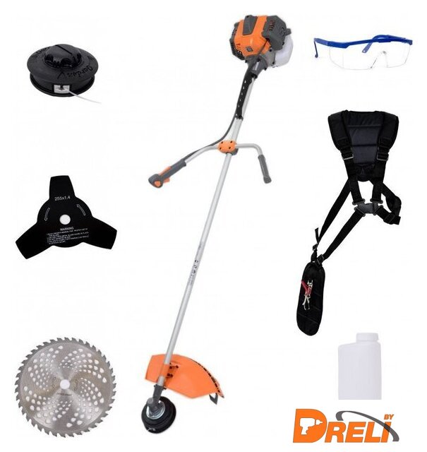 | Комплектация | - Двигатель;- Штанга;- Рукоятка с комплектом крепежа;- Защитный кожух;- Катушка с леской;- Стальной нож;- Плечевой ремень;- Набор ключей;- Отвертка;- Очки;- Руководство по эксплуатации; |