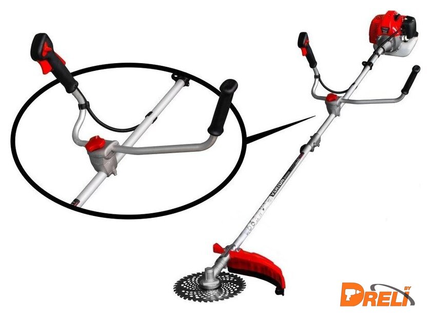 Комплектация | • Дисковый 40-зубый нож с победитовыми напайками• Катушка из качественного пластика с повышенной прочностью и металлическим сердечником, позволяющий максимально быстро и просто производить заправку лески, d лески до 3 мм.• Набор инструмента для сборки в сумке с замком• Наплечный ремень ранцевого типа |