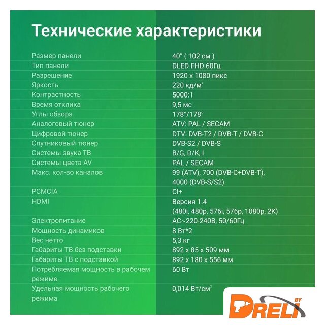 | ТВ-тюнер | аналоговый, DVB-C, DVB-T, DVB-T2, DVB-S/S2 |