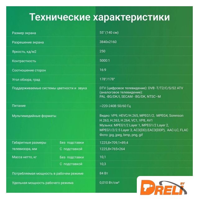 | Диагональ экрана | 55" |