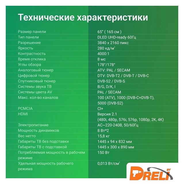 Диагональ экрана | 65" |