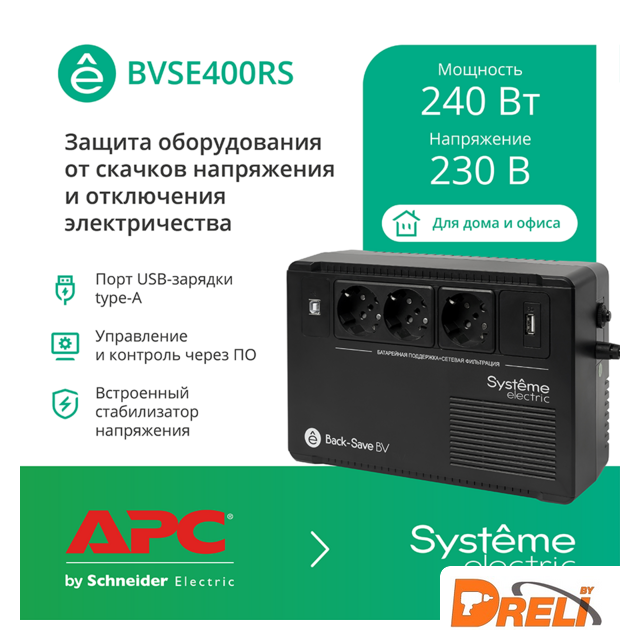 | Полная мощность | 400 VA |