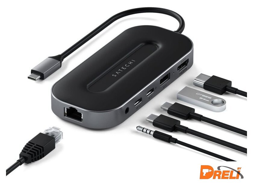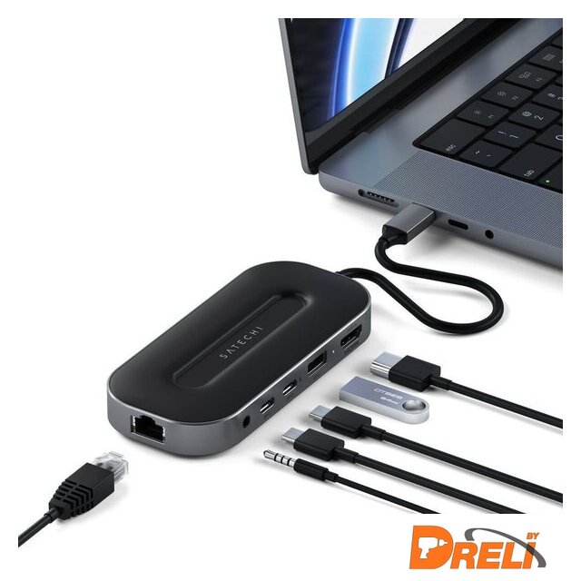 Все разъемы на адаптере | USB-A 3.2 Gen2 (10 Гбит/с), USB-C 3.2 Gen2 (10 Гбит/с), RJ-45, 3.5 мм jack |