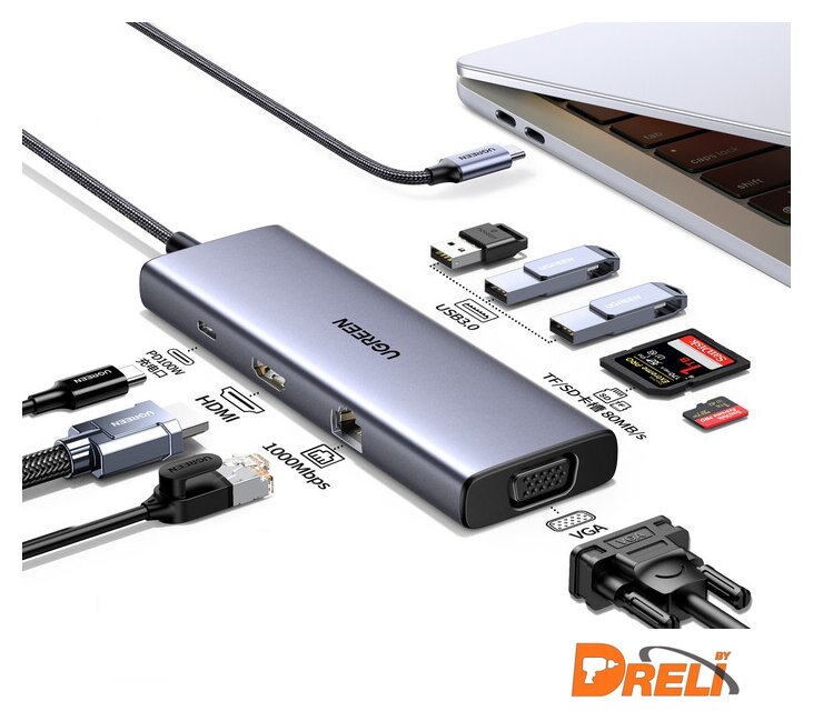 | Все разъемы на адаптере | USB-A 3.2 Gen1 (5 Гбит/с), HDMI, VGA, RJ-45, USB-C (только для зарядки) |