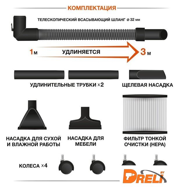 Дополнительные насадки | насадка для влажной уборки, гибкий шланг |