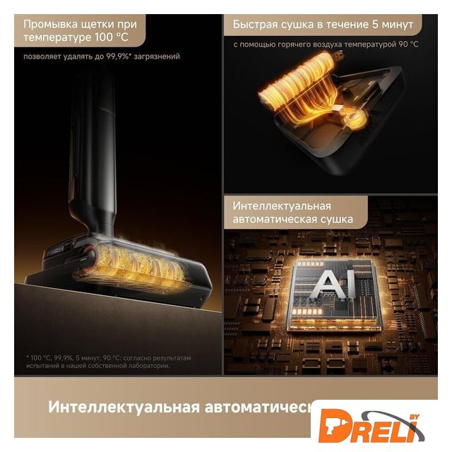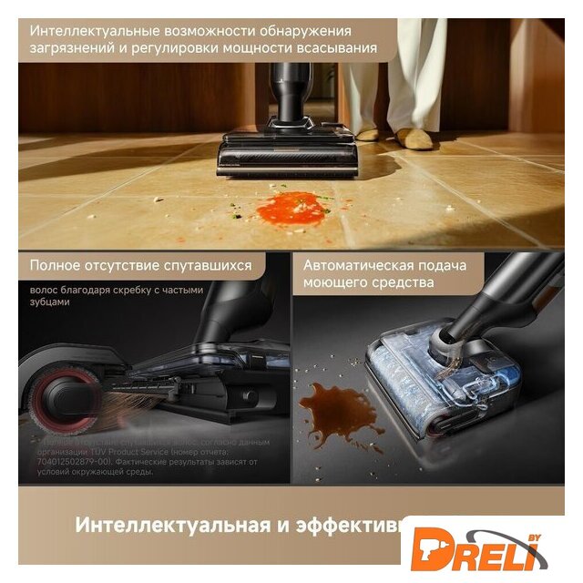 | Функциональные особенности | всасывание жидкостей, дисплей, автоматическая мойка швабры, автоматическая сушка швабры, дозатор для моющего средства |