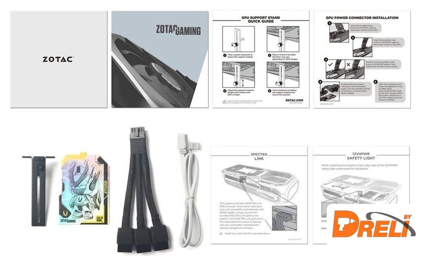 Комплектация | разветвитель 3 x 8-pin - 1 x 16-pin, кабель синхронизации подсветки, держатель видеокарты, документация |