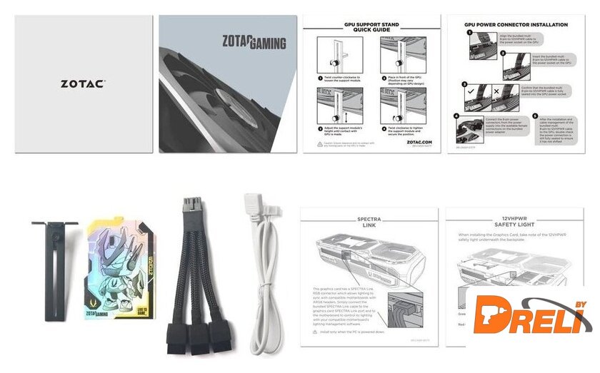 Комплектация | разветвитель 3 x 8-pin - 1 x 16-pin, кабель синхронизации подсветки, держатель видеокарты, документация |