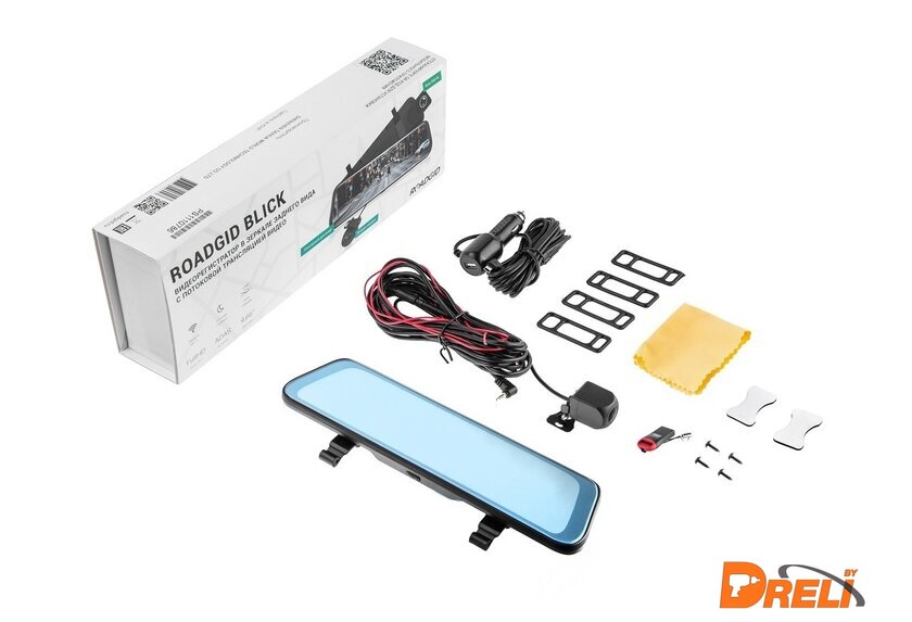 | Комплектация | - Видеорегистратор зеркало;- бандаж 4шт (2 запасные);- вторая камера с проводом 6 метров;- монтажный комплект второй камеры (2 самореза, клейкая лента);- салфетка для линзы и дисплея;- адаптер USB-microSD. |