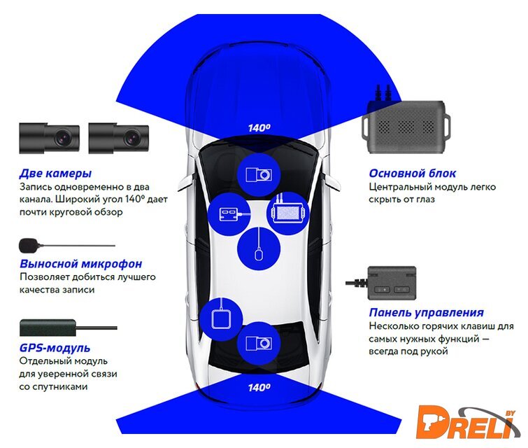 Комплектация | - Главный блок видеорегистратора- Панель управления с кабелем питания- Внешний GPS-модуль- Микрофон- Основная камера и камера заднего вида- USB-картридер- Инструкция- Гарантийный талон |