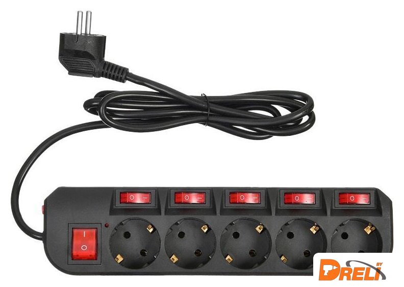 сетевой фильтр, кабель 5 м, 5 розеток Schuko (евро с заземлением) / 2200 Вт