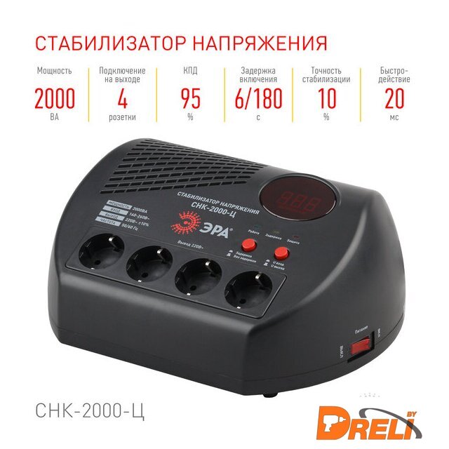 стабилизатор, кабель 1.1 м, 4 розетки Schuko (евро с заземлением), 1000 VA