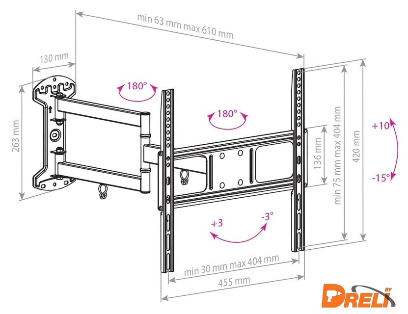 Расстояние от стены (потолка) | 63 — 610 мм |