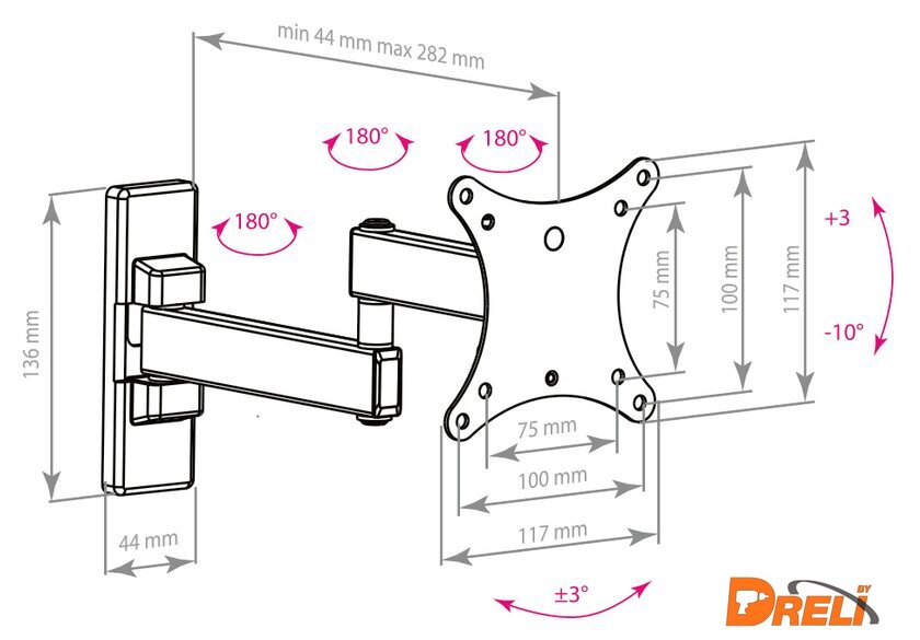 Расстояние от стены (потолка) | 44 — 282 мм |