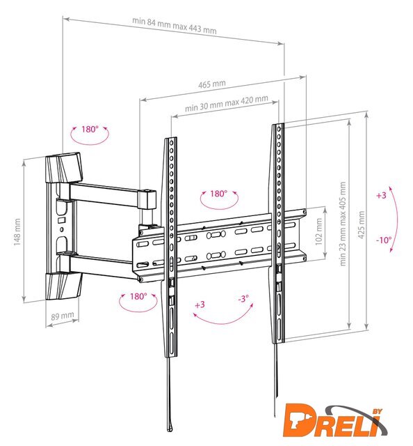 Расстояние от стены (потолка) | 84 — 443 мм |