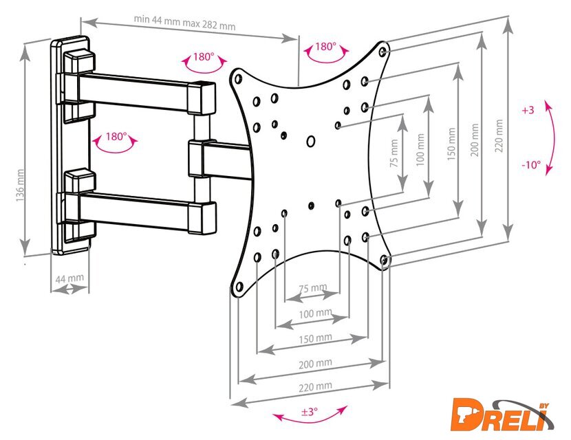 Расстояние от стены (потолка) | 44 — 282 мм |