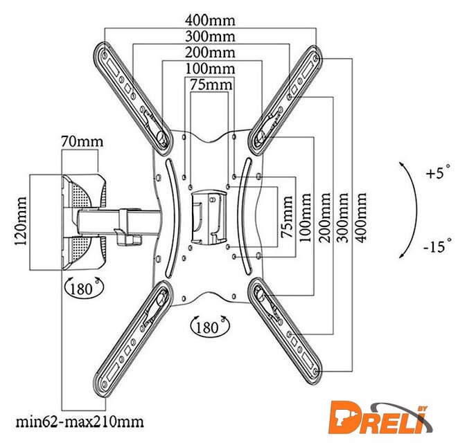 | Расстояние от стены (потолка) | 62 — 210 мм |