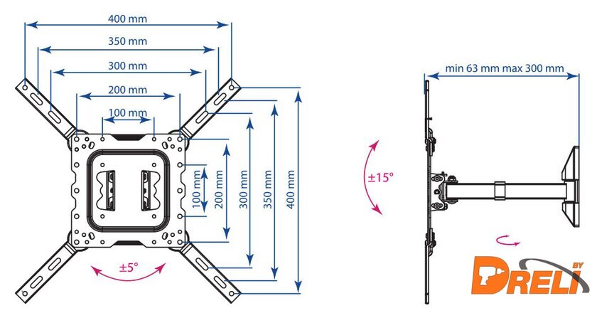 | Расстояние от стены (потолка) | 63 — 300 мм |
