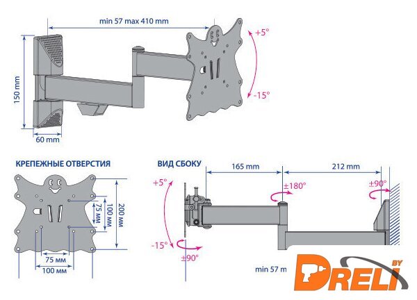 | Расстояние от стены (потолка) | 57 — 410 мм |