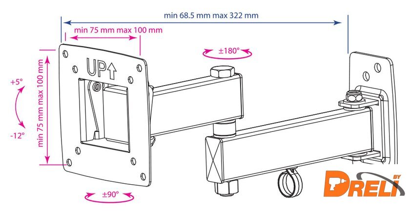 | Расстояние от стены (потолка) | 68.5 — 322 мм |